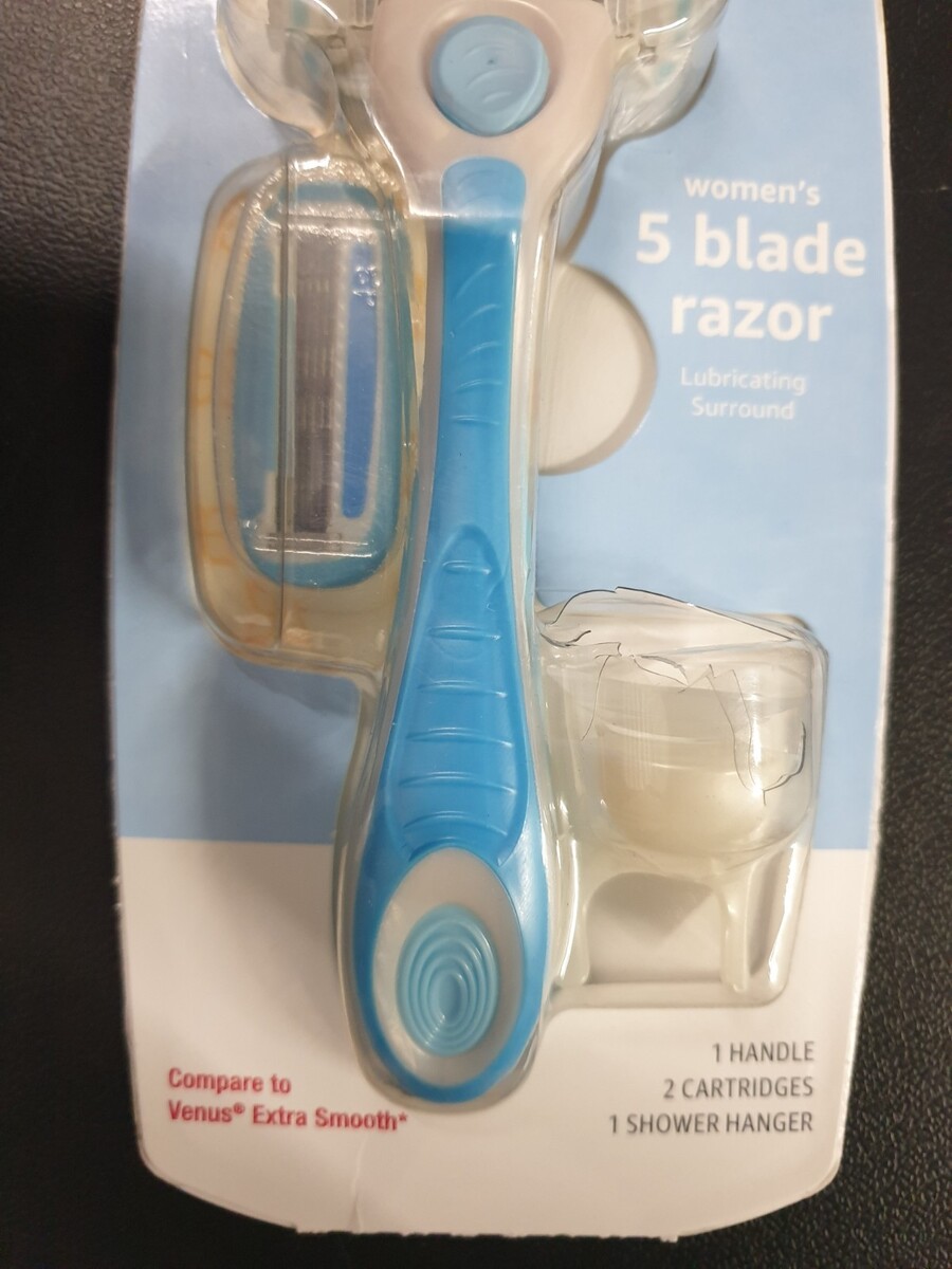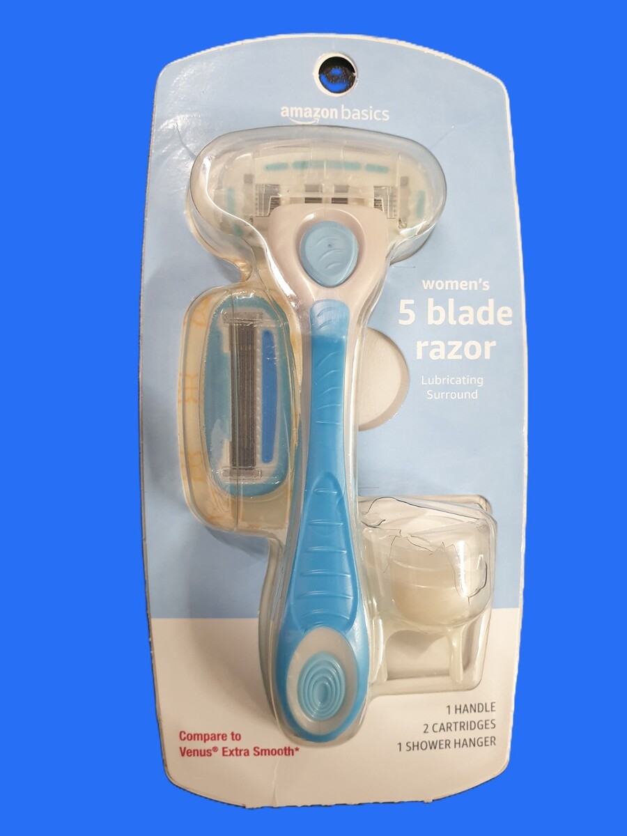 Amazon Basics Womens 5 Blade Razor Handle w/ 2 Refill Cartridges Shower Hanger