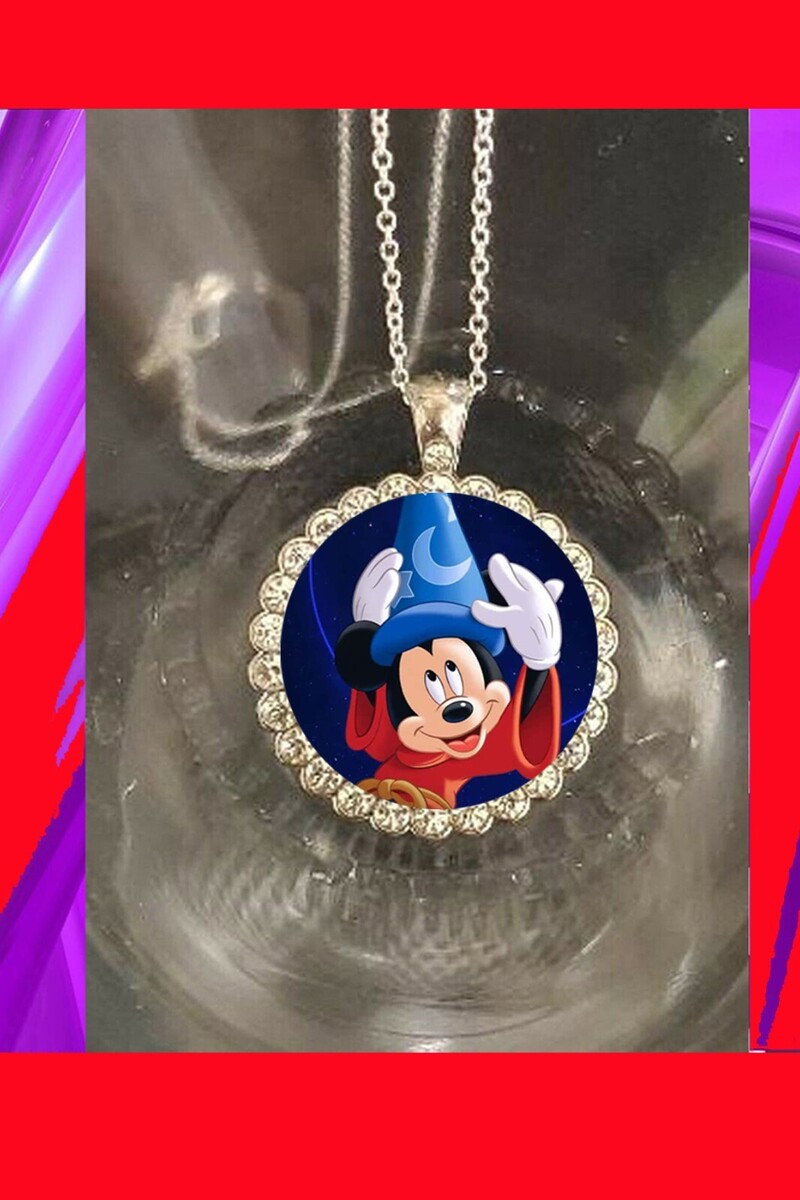 Mickey and the Sorcerers Apprentice 925 silver necklace rhinestones pretty gift