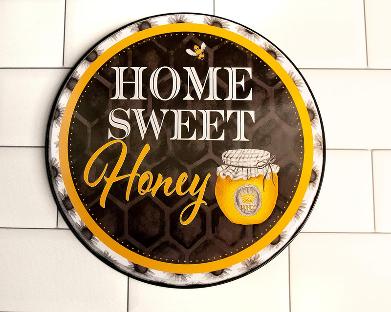 Background is a black and grayscale honeycomb pattern. Complements farmhouse and natural decor styles.