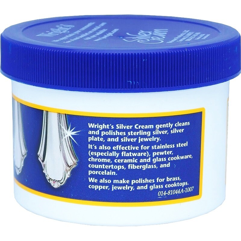 FOR SALE IS ONE (1) NEW PLASTIC JAR OF WRIGHT'S SILVER CREAM WITH APPLICATOR SPONGE 8 ounce JAR MANUFACTURED BY J.A. WRIGHT COMPANIES MPN 014 UPC# 011121000145. WRIGHT'S SILVER CREAM IS THE ORIGINAL, GENTLE, ALL PURPOSE PINK COLOR POLISH FOR ALL SILVER. CLEANS, SHINES, RESTORES AND POLISHES SILVER TO A BRILLIANT SHINE. IT REMOVES TARNISH QUICKLY, LEAVING A BRILLIANT AND EVEN SHINE. THIS SAFE AND MILD FORMULA REMOVES TARNISH AND KEEPS SILVER SHINING LONGER. RECOMMENDED FOR STERLING SILVER, SILVER PLATE, SILVER JEWELRY, ANTIQUE SILVER, FLATWARE, PEWTER, CHROME, FIBERGLASS AND PORCELAIN. WRIGHT'S SILVER WORKS GREAT ON GOLF CLUBS, BELT BUCKLES, BOAT HARDWARE, CERAMIC COOKWARE, DENTURES, STAINLESS STEEL SINKS, EVEN WHITE LEATHER, IT EVEN REMOVES SCRATCHES FROM CDs AND DVDs. MADE IN THE USA, PHOSPHATE FREE AND KOSHER CERTIFIED. YOU WILL RECEIVE ONE (1) 8 ounce PLASTIC JAR OF WRIGHT'S SILVER CREAM WITH APPLICATOR SPONGE SHIPPED BY USPS.....