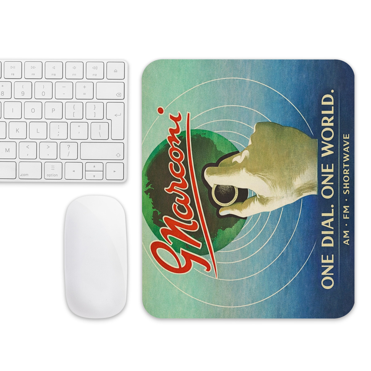 Vintage Radio Art Mouse Pad – “One Dial. One World.” – Art Deco Style – 9.5" 7.75"