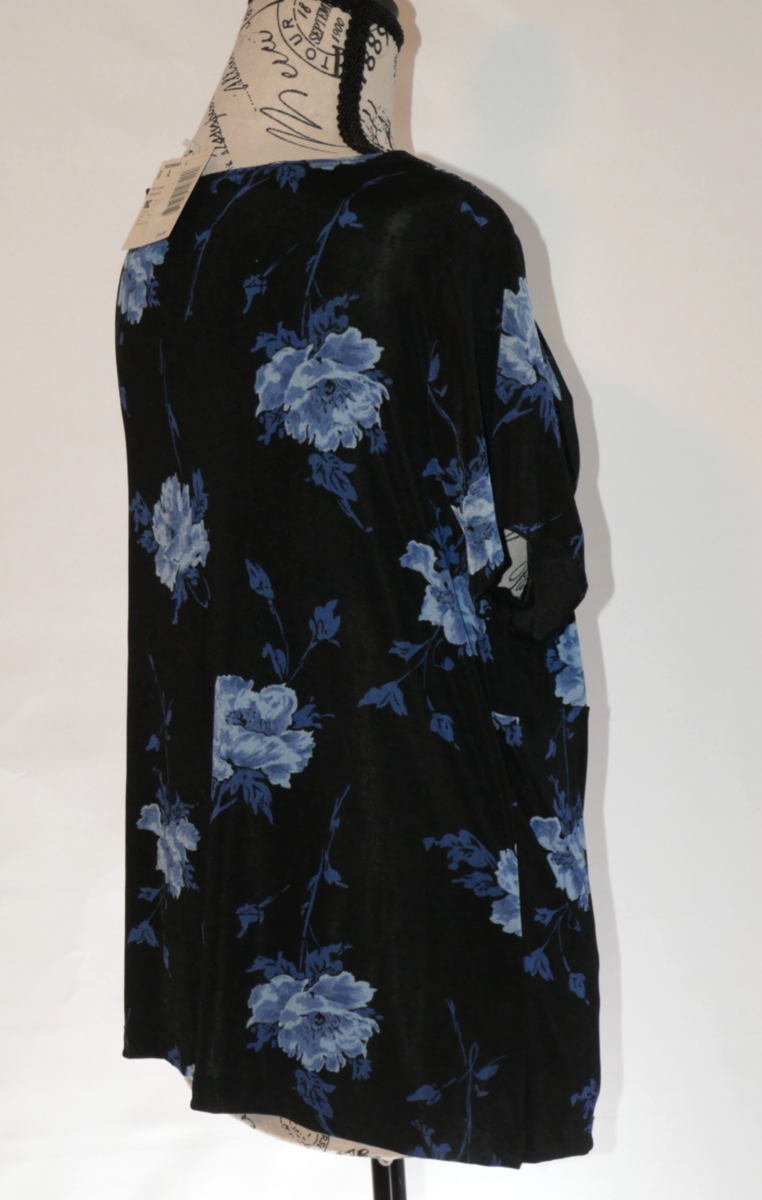 The Jaclyn Smith Collection Cowl Neck Blouse features a floral pattern, short cap sleeves, and a pullover closure. This measures approx. 20" from pit to pit, 25" from shoulder to bottom hem with 6.5" sleeves. Made of polyester and spandex, this vintage-inspired blouse is perfect for casual occasions in the summer, fall, or spring. The multicolor design and cowl neck neckline add a stylish touch to this basic piece from the Jaclyn Smith brand, offering a comfortable fit for women who appreciate colorful and trendy tops.