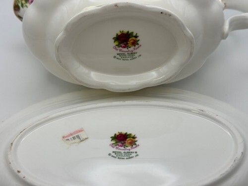 Old Country Roses gravy boat measures 8" in length from spout to handle. The underplate measures 8 1/2" x 6". They are in very good condition with no chips or cracks.