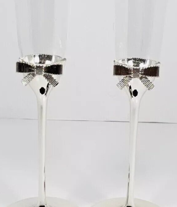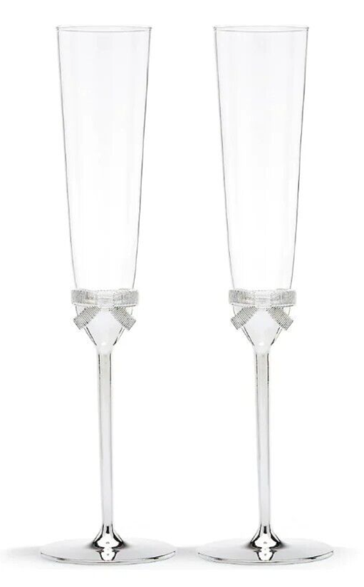 Kate Spade Grace Avenue Champagne Flute SET/2 Crystal/Silverplate Bow & Stem New