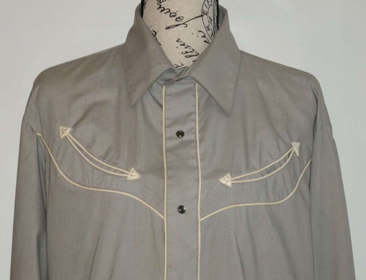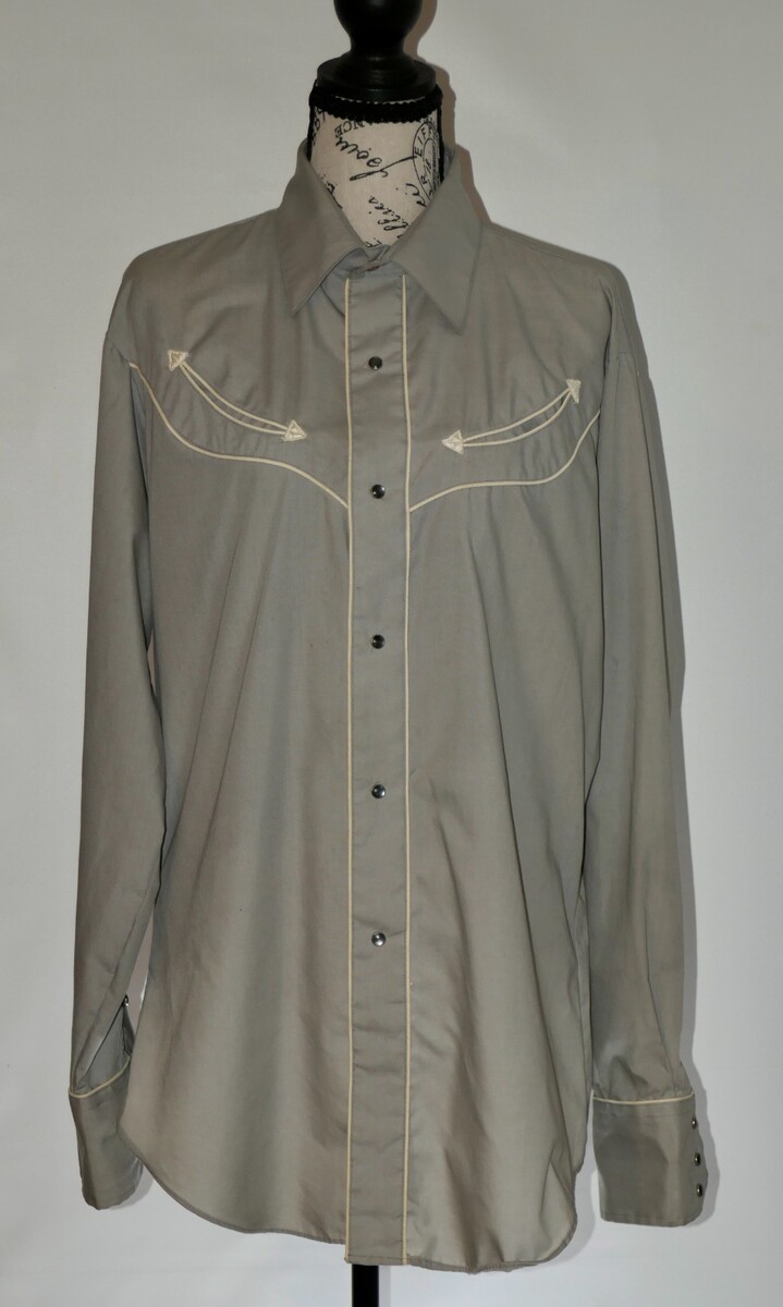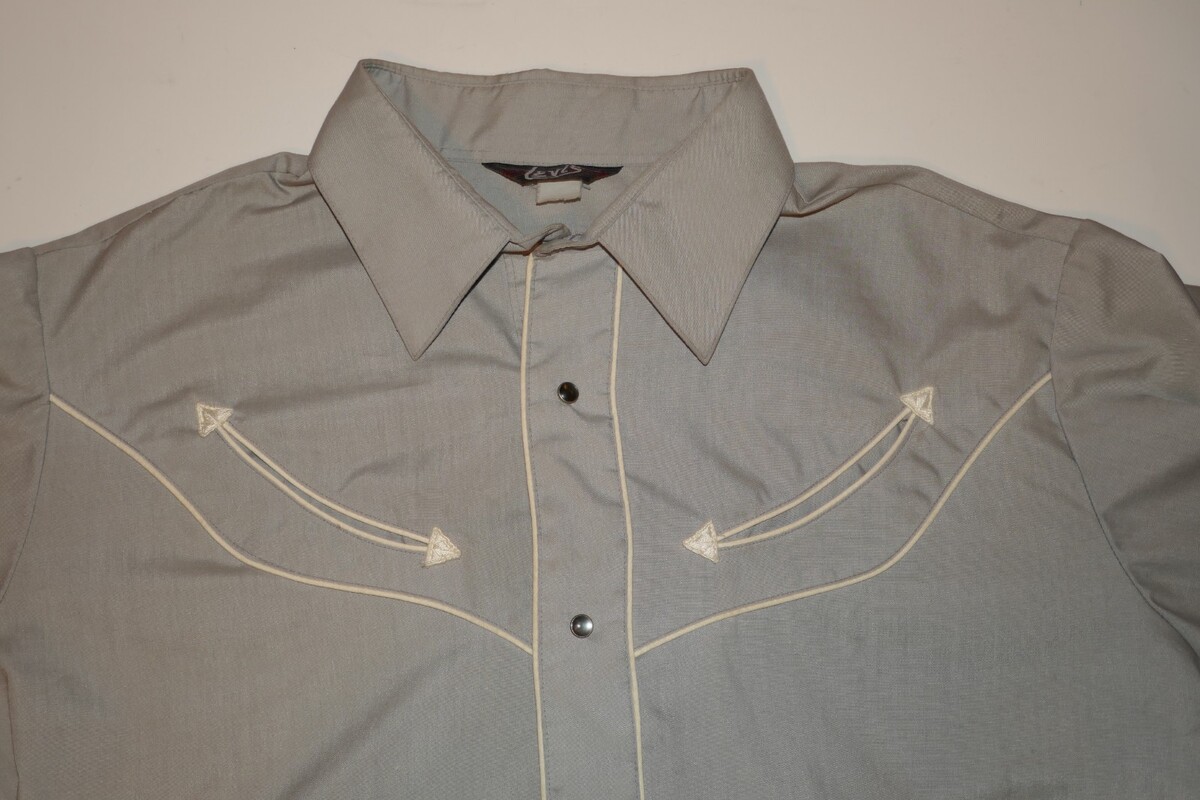 Levi's Gray Pearl Snap Western Cowboy Shirt with White Accents Size L