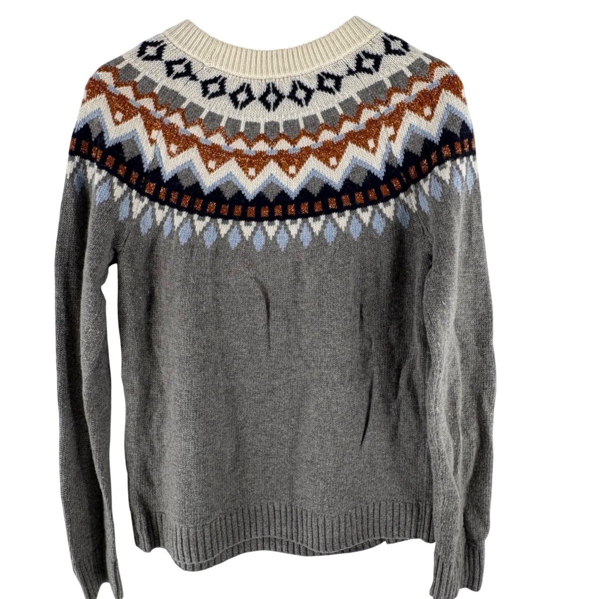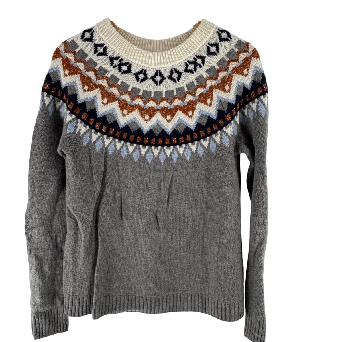 J.Crew Fair Isle Knit Sweater Gray Nordic Wool Blend Crewneck Women's M