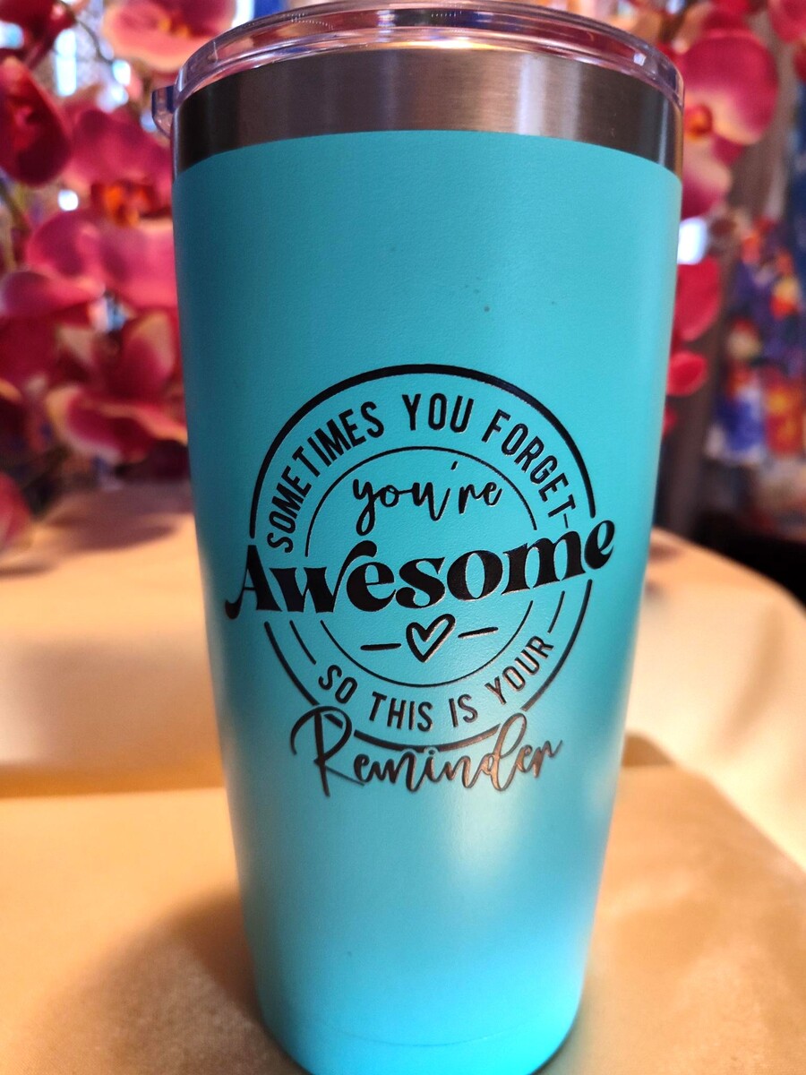 • New Reminder 12oz Tumbler to carry your message throughout the day