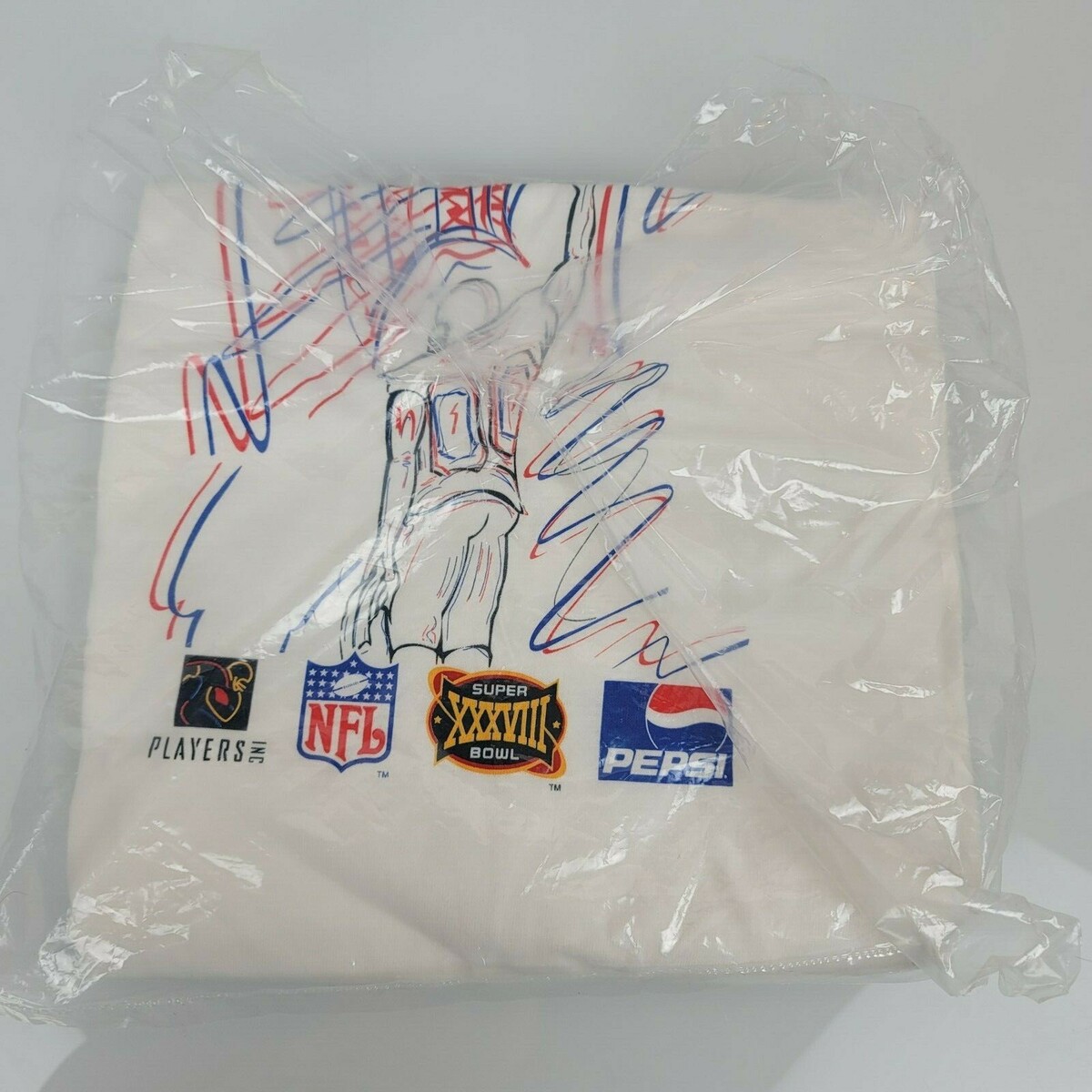 NFL SUper Bowl XXXVIII Players Inc Pepsi White T Shirt USA America Flag Scribble
