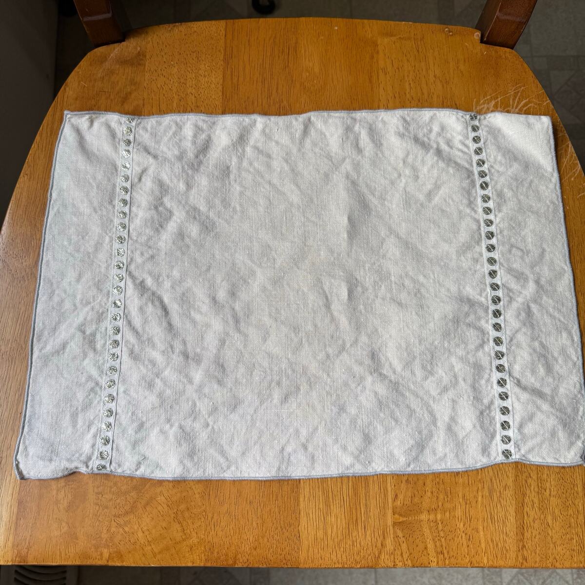 Holiday Linen Placemat Napkin Set of 4 Ivory Silver Dots Christmas Dinner Party