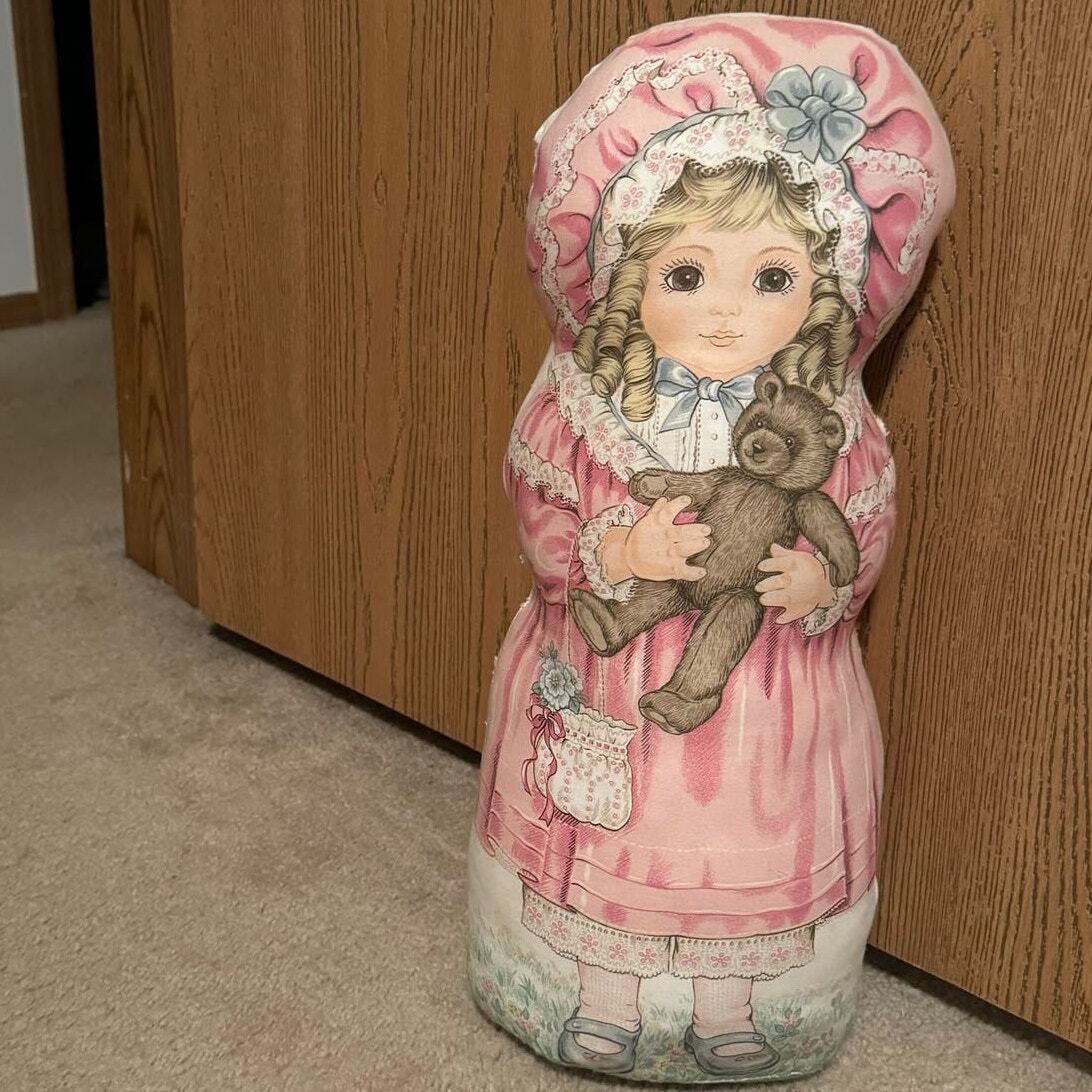 Cranston Petite Bebe Pink Victorian Girl Doll Fabric Doorstop 18" Cottage Core