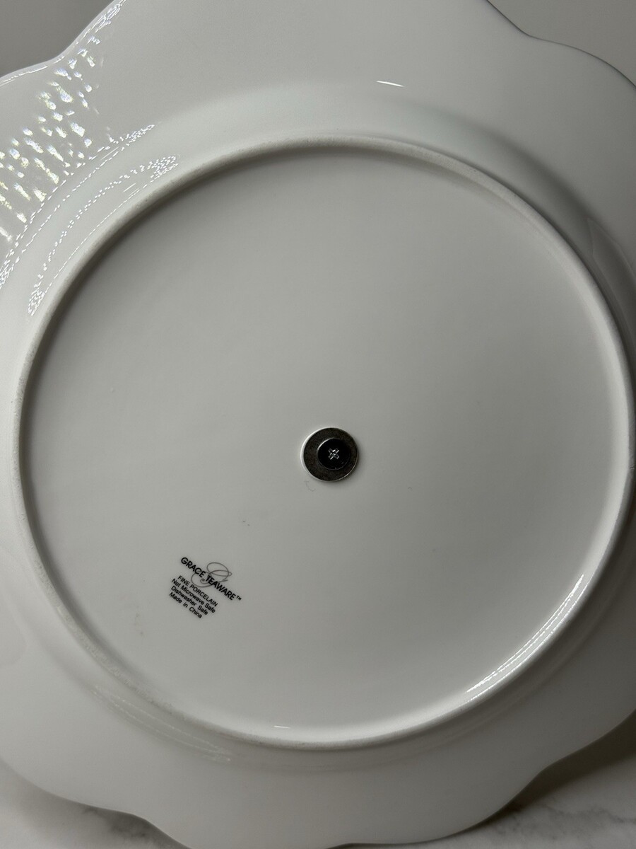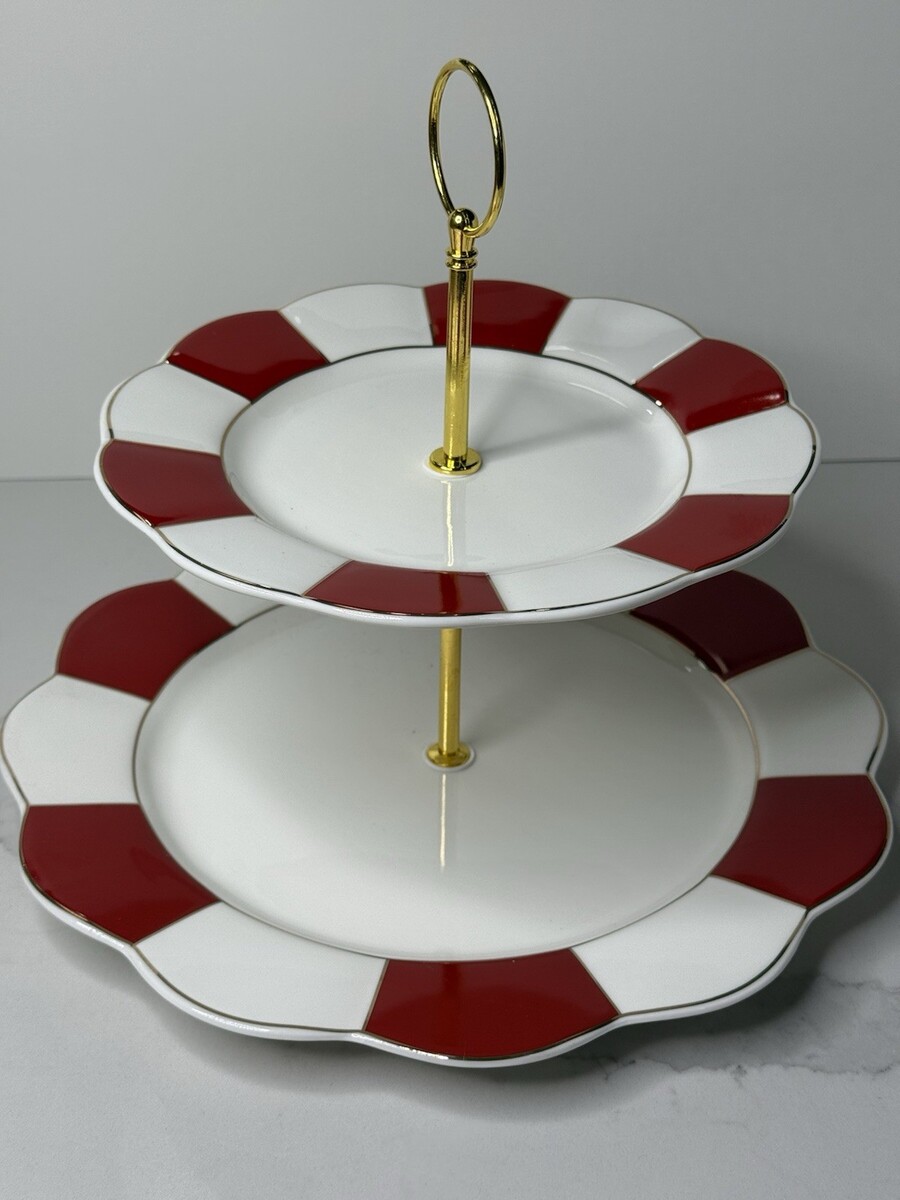 Grace Teaware Scolloped Red Stripe 2 Tier Tidbit Serving Tray New