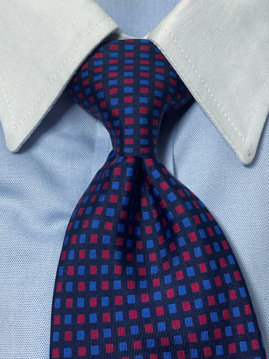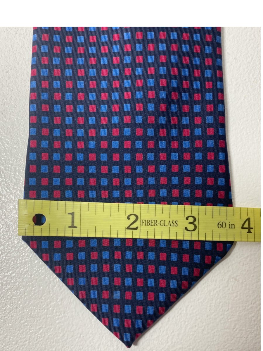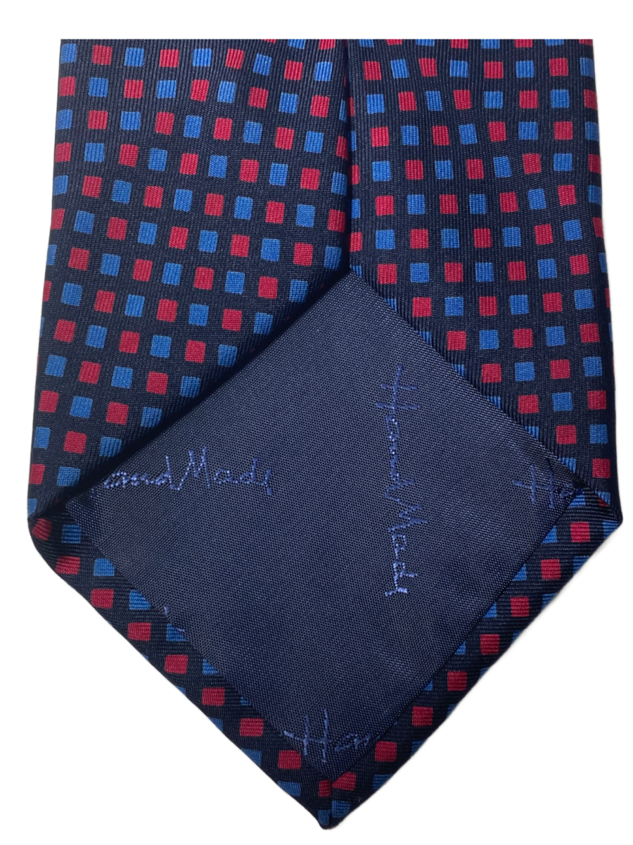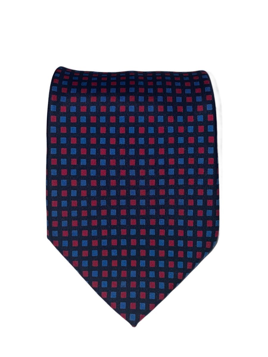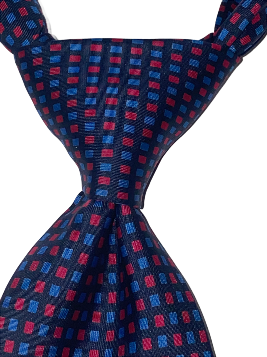 BARNEYS TIE Navy BASE WITH RED AND BLUE GEOMETRIC PATTERN. MADE IN ITALY SOFT