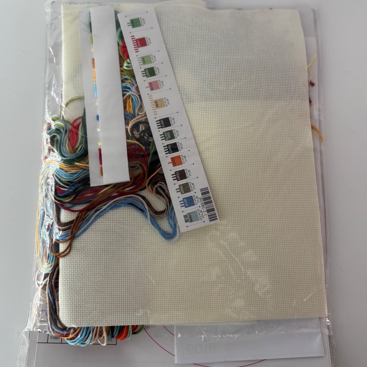 ? Kit includes pre-sorted threads, aida cloth, needle, and instructions