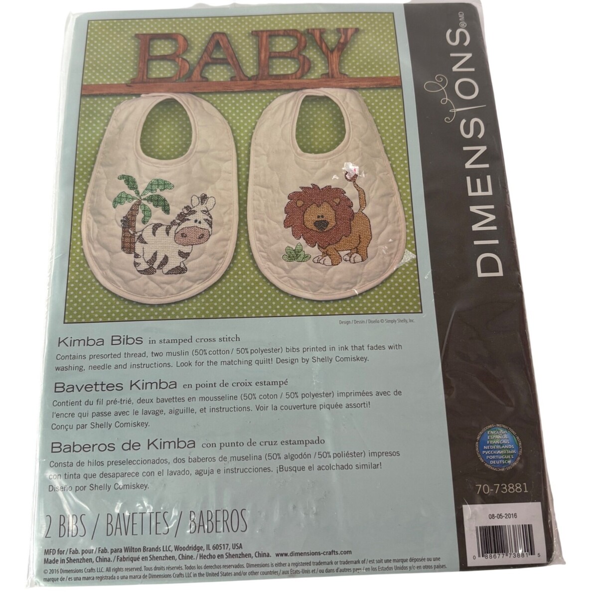 Dimensions Baby Kimba Bibs Cross Stitch Kit With Lion & Zebra Designs New
