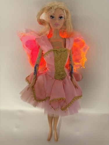 for a Barbie Fairytopia Elina doll. Comes as shown, her wings do light up but one side has a bend. Batteries not included.