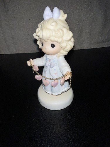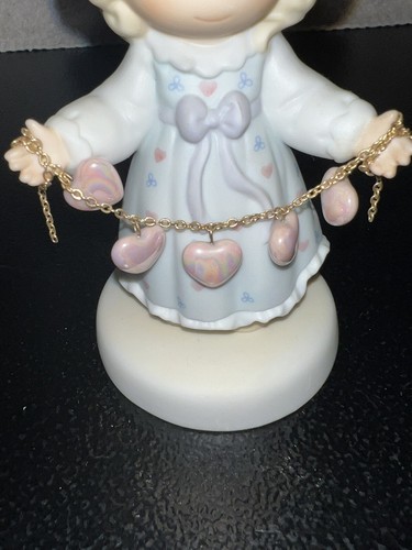 This Precious Moments figurine is a beautiful piece that celebrates the heart and the power it has to touch so many lives. Made in 1996, it features a lovely heart pattern and is perfect for collectors of decorative items. The figurine is made by a trusted brand, Precious Moments, and is sure to bring joy to any room it is displayed in. Whether you are a fan of hearts or simply appreciate the beauty of collectibles, this figurine is a must-have for your collection.