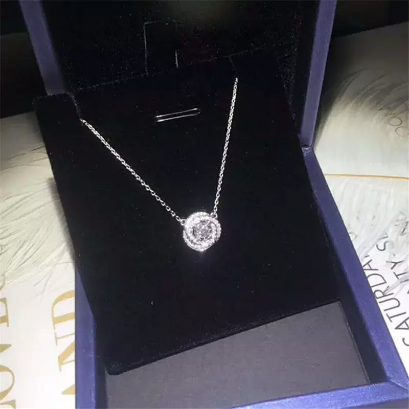 Elegant diamond pendant necklace real 925 sterling silver chain