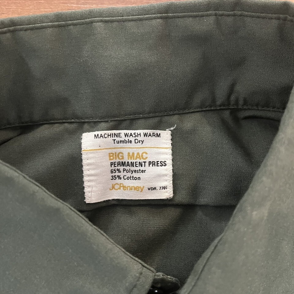 Vintage JCPenney Big Mac Green Permanent Press Men’s Work Shirt XL
