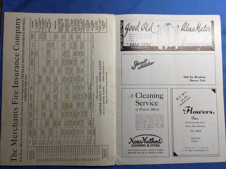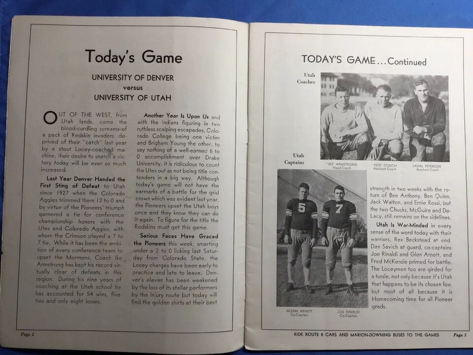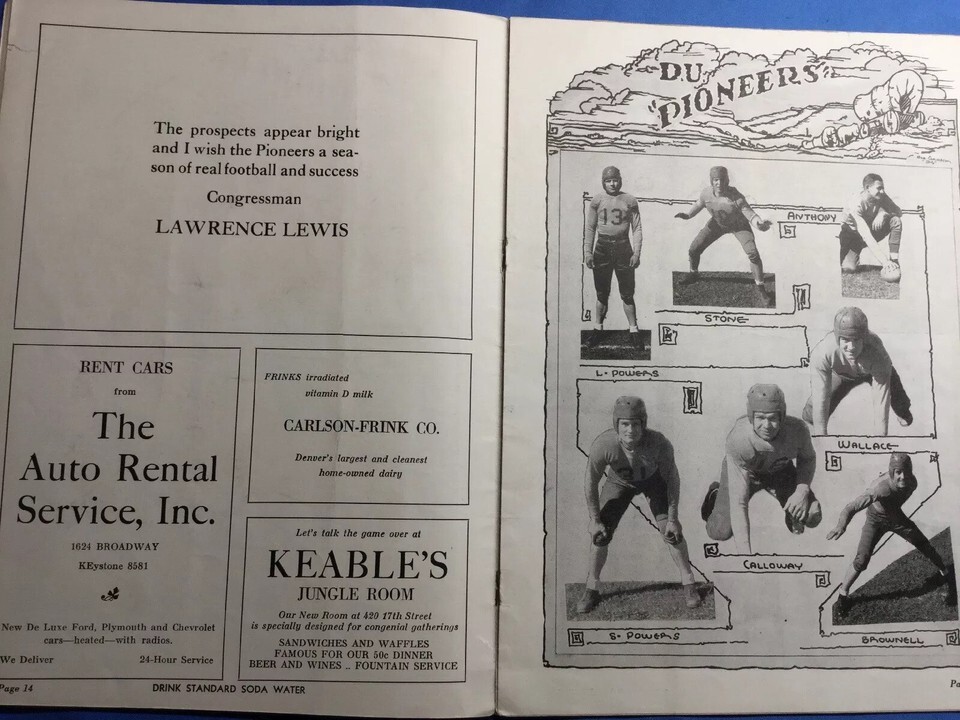 1934 NCAA Football Program UNIV OF UTAH VS UNIV OF DENVER