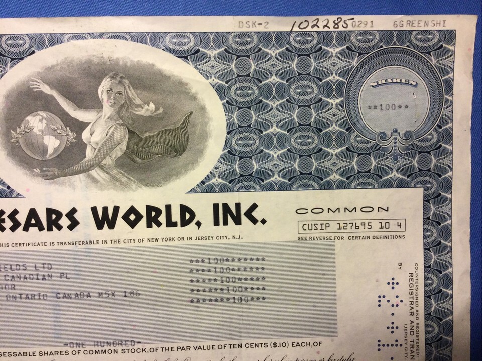 Caesars World, Inc Stock Certificate - 1981 and 48 similar items