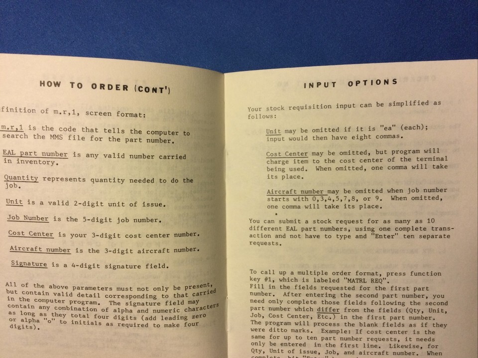 EASTERN AIRLINES POCKET INFORMATION GUIDE TRIM MATERIAL REQUISITIONING - 1977