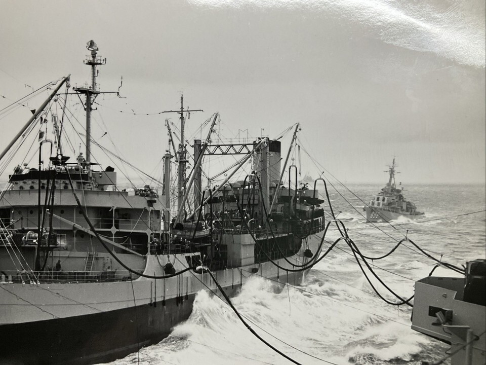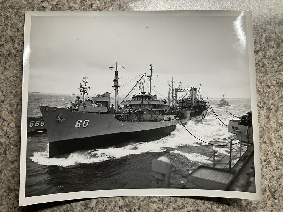 8? x 10? OFFICIAL USN PHOTO. VG cond original sept 1957 FREE Shipping REFUELING 2 ships USS ESSEX and USS BRONSON