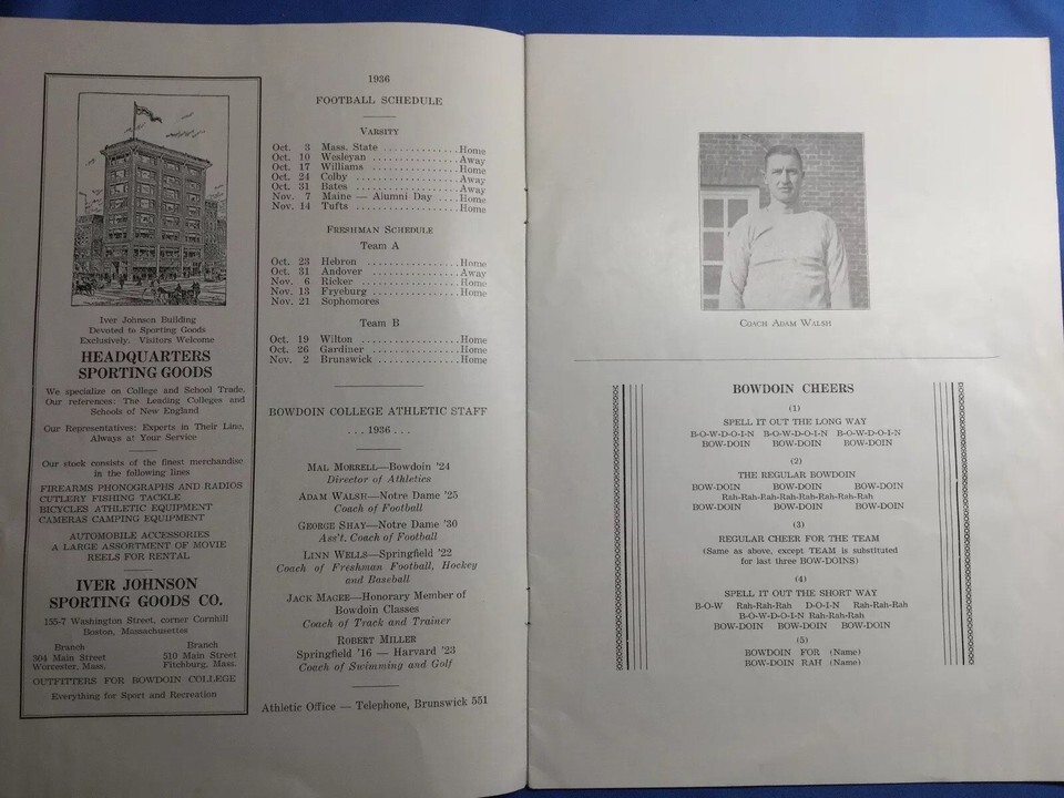Vintage 1936 College Football Program Mass State vs Bowdoin. Shipped with FREE USPS First Class Package.