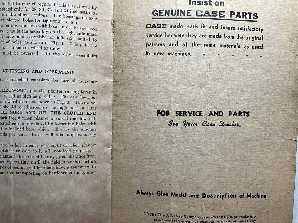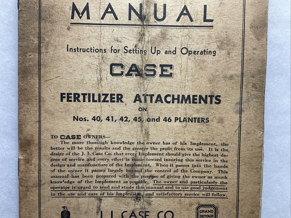 JI Case Fertilizing Attachments 40, 41, 42, 45 & 46 PLANTERS Manual ORIGINAL