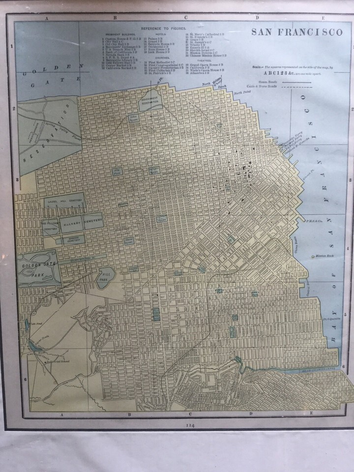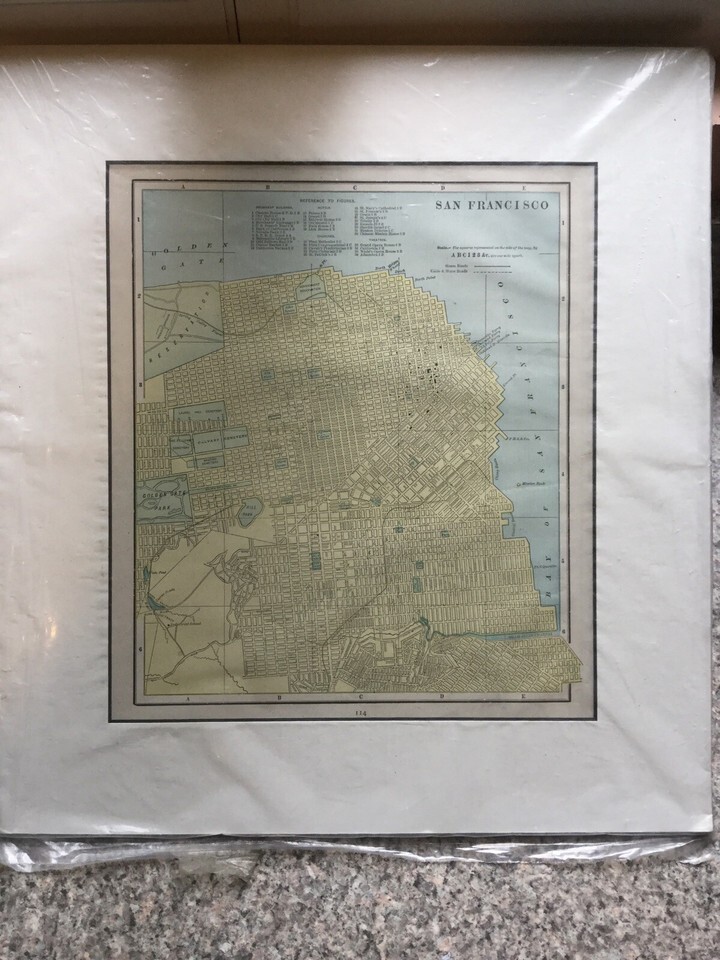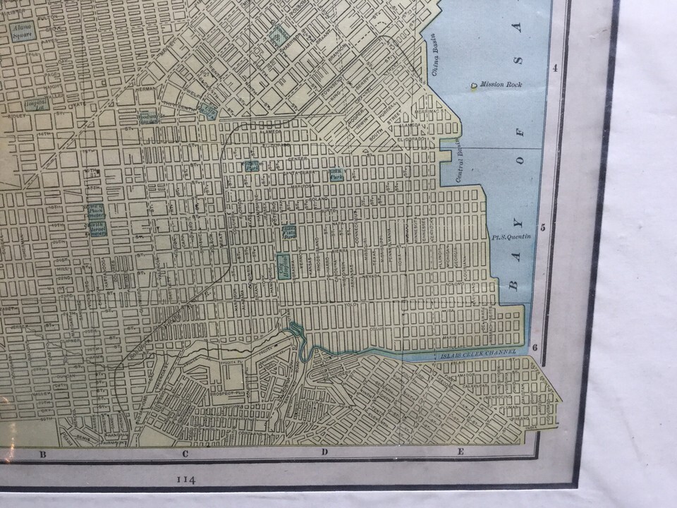 1887-1899 Map Of San Francisco Hand Colored. From old Atlas. Matted . Shipped with USPS First Class. Map itself is 10.5? x 12?