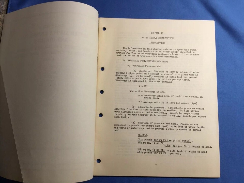 U. S. Army Engineer School Ft. Belvoir WATER SUPPLY DISTRIBUTION AND UTILITIES HANDBOOK Shipped FREE with USPS Media Mail. Good Condition and looks like a compilation of manuals..cannot guarantee fully complete.