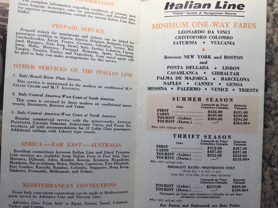Italian Line SAILINGS - Original Brochure 1964