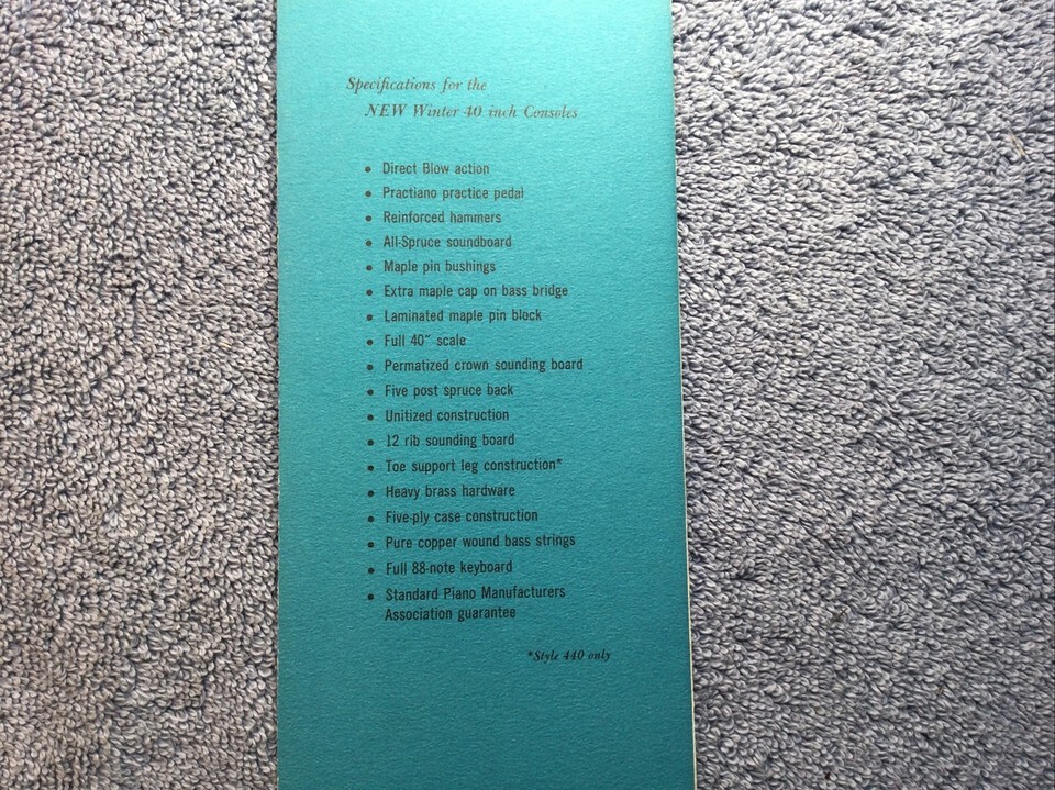 Piano Brochure Winter 40 Inch Consoles and 50 similar items