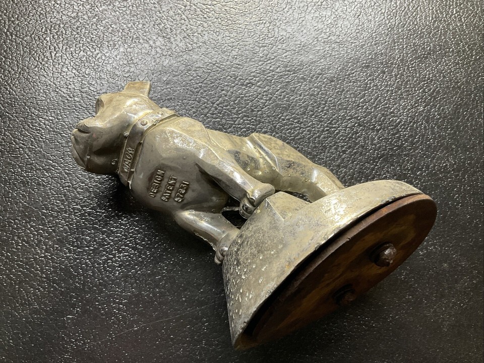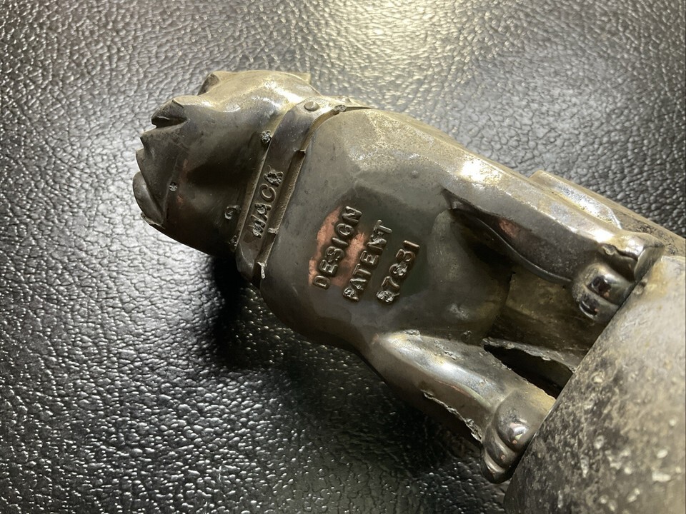 Vintage MACK Truck Bulldog Metal Hood Ornament Design Patent 87931 w/ Base