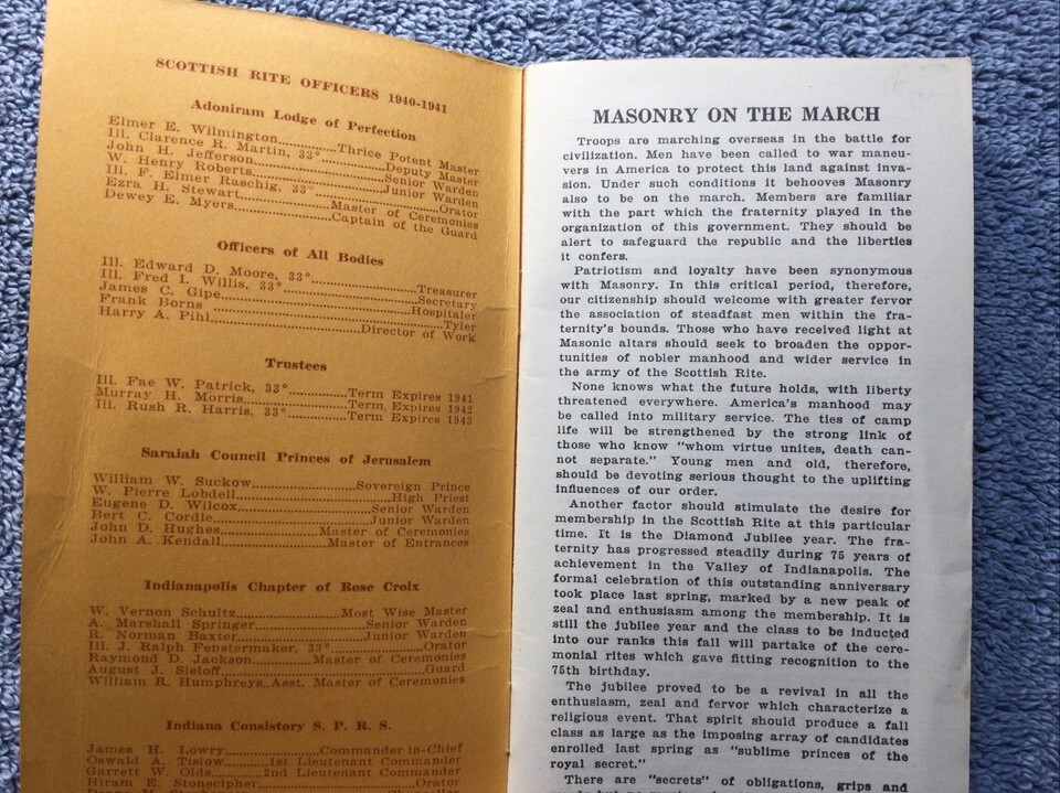 Original 1940-41 Masonic Ancient Accepted Scottish Rite Pocket Edition Booklet