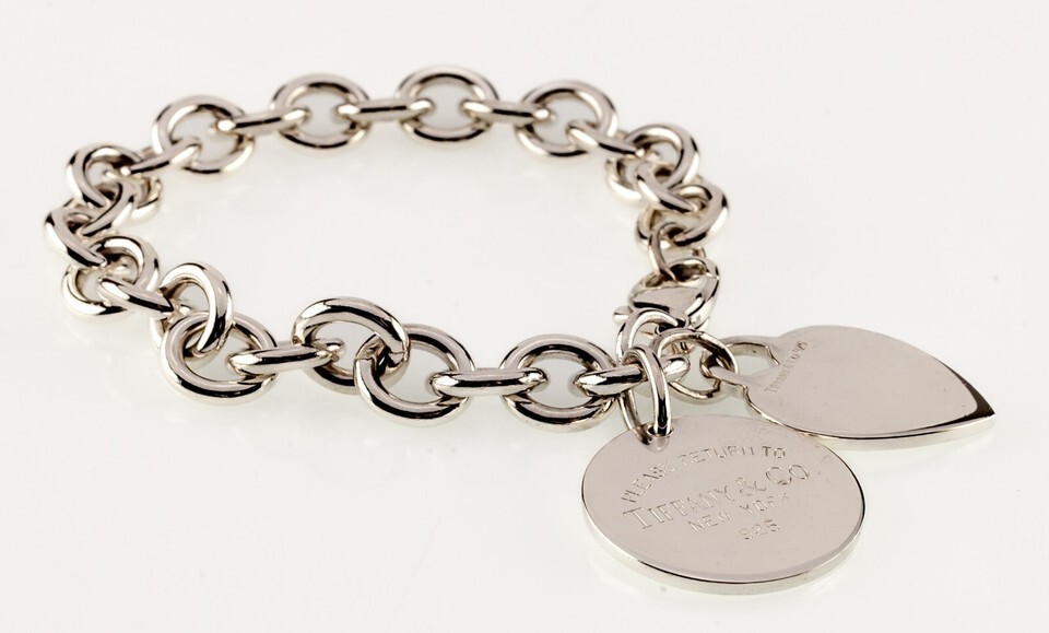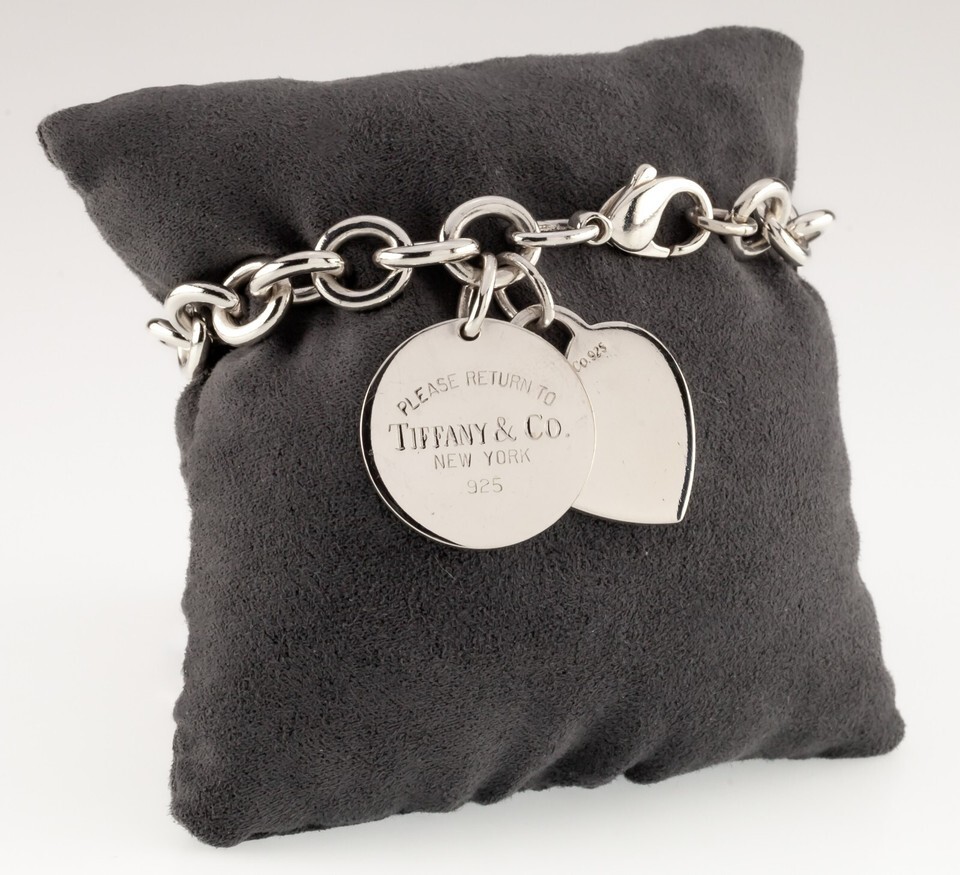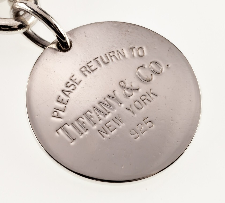 Features Round "Return To" Tiffany Tag Charm and Blank Heart Charm