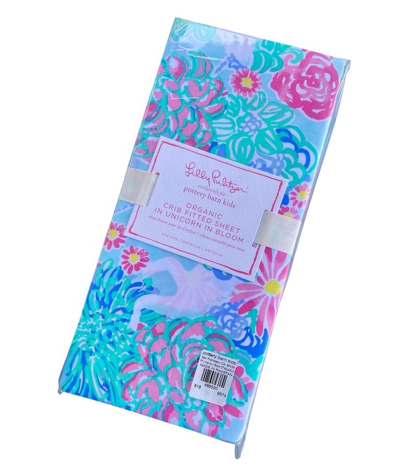 NEW Pottery Barn Kids Lilly Pulitzer Unicorn in Bloom Organic Crib Sheet NWT