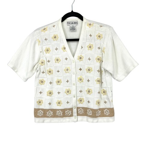 Vtg Ashlyn Kate Womens Green V Neck Short Sleeve Cardigan Sweater Sz S