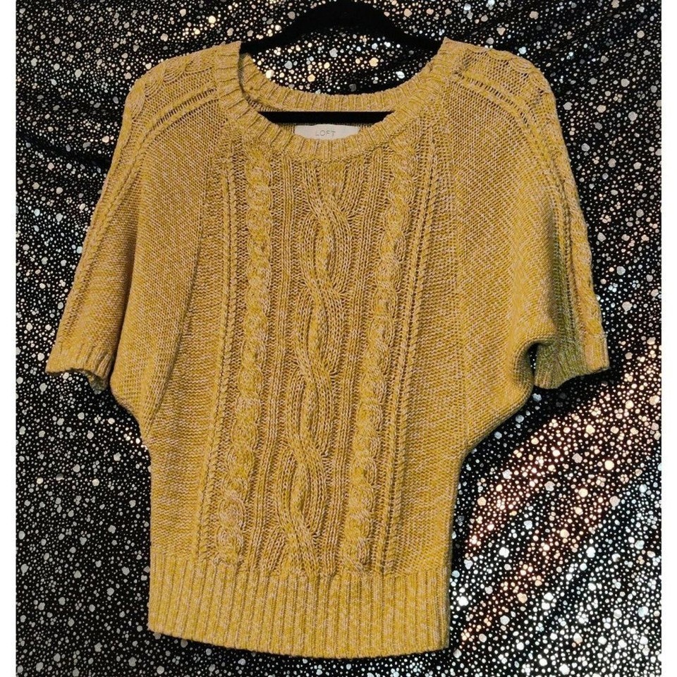 Ann Taylor LOFT Sweater Cable Knit Cotton Round Neck Short Sleeve Yellow Size XS