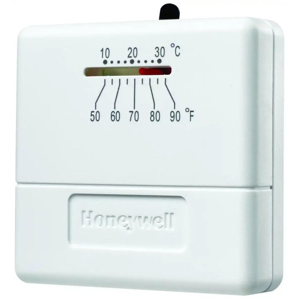 The Honeywell Home CT30A1005 Heat Only Thermostat has low voltage controls with a snap-action switch for heating systems. This non-programmable thermostat comes with mounting hardware (wall plate included) and does not require leveling. For straightforward temperature control, there's no substitute for Honeywell Non-Digital Thermostats. This manual thermostat controls heating in your home simply and effectively. Mercury free and compatible with heat only systems, this Honeywell Non-Programmable Thermostat has been an industry standard for years. Complete with mounting hardware and a wall plate, this Heat Only Non-Programmable Thermostat is built with low voltage controls and a snap-action switch for heating systems. This Honeywell Home Manual Thermostat makes heat control in your home a breeze. No leveling is required.