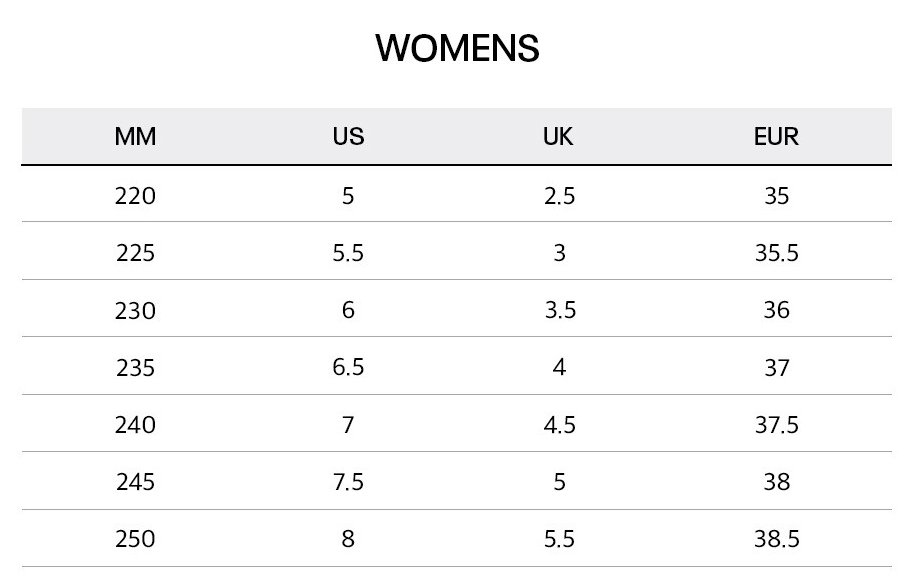 Size : 230 mm ~ 250 mm (JP) / US Size: 6 ~ 8