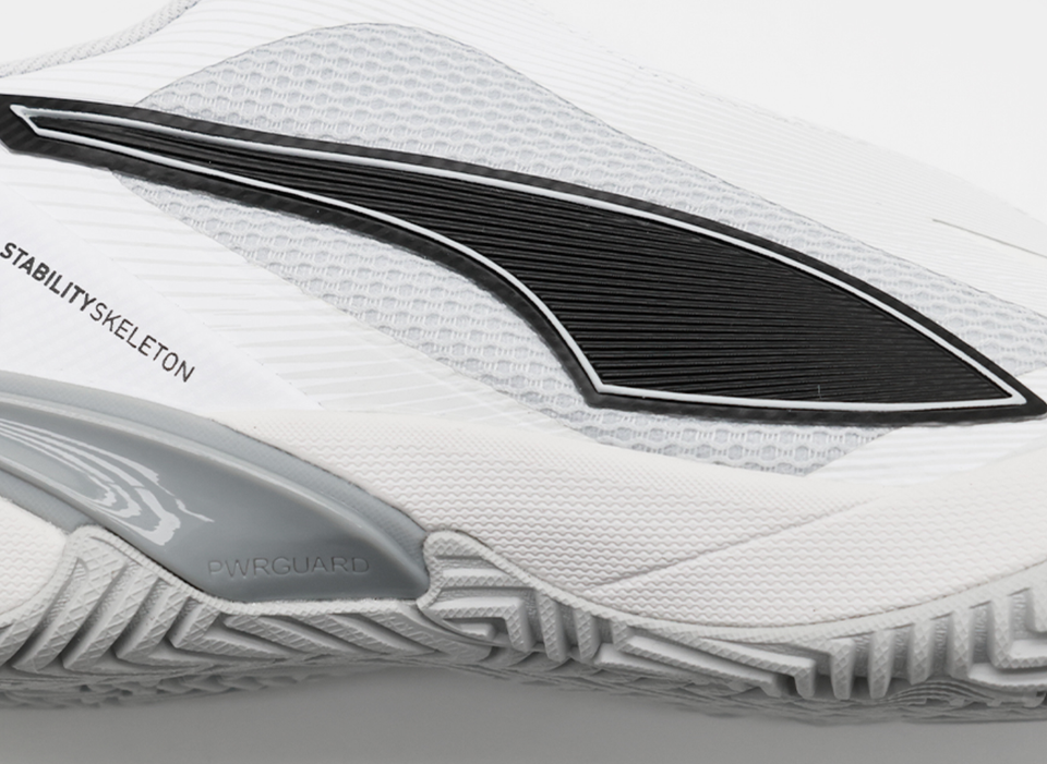 The midfoot support structure and reinforced side design effectively control foot movement even during intense motion.