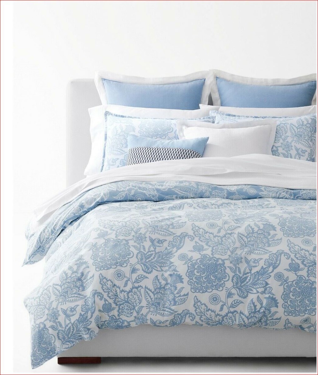 - crisp cotton bedding graced with modern Jacobian floral pattern in a cool sky blue (aqua) palette