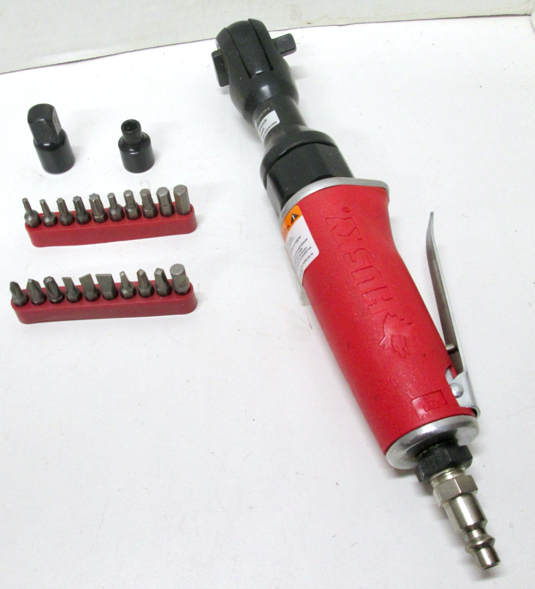 Husky H205K-FP2 3/8" Air Ratchet W/Bits Adapters. The air ratchet has a maximum of 50 ft. lbs. It works as it should and includes 20 different 1/4" bits, 1/4" adapter, and a 3/8" to 1/2" adapter. Sold with free shipping.