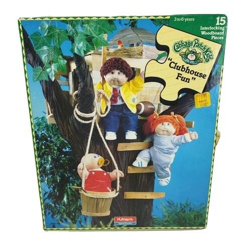 VINTAGE 1984 CABBAGE PATCH KIDS DOLLS PLAYSKOOL WOODEN PUZZLE CLUBHOUSE FUN