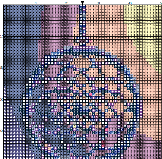High-resolution PDF chart – Full stitching pattern with clear symbols, colour legend, grid markers. Opens on any device.