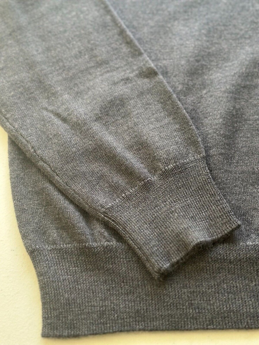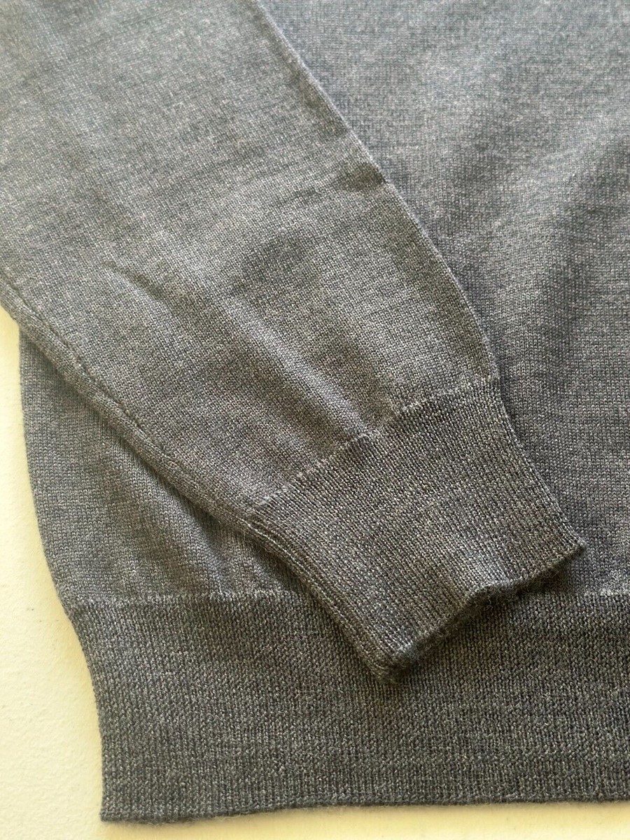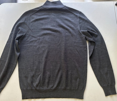 The Men's Store Designer Quarter-Zip Merino Wool Sweater in Med Grey-Small