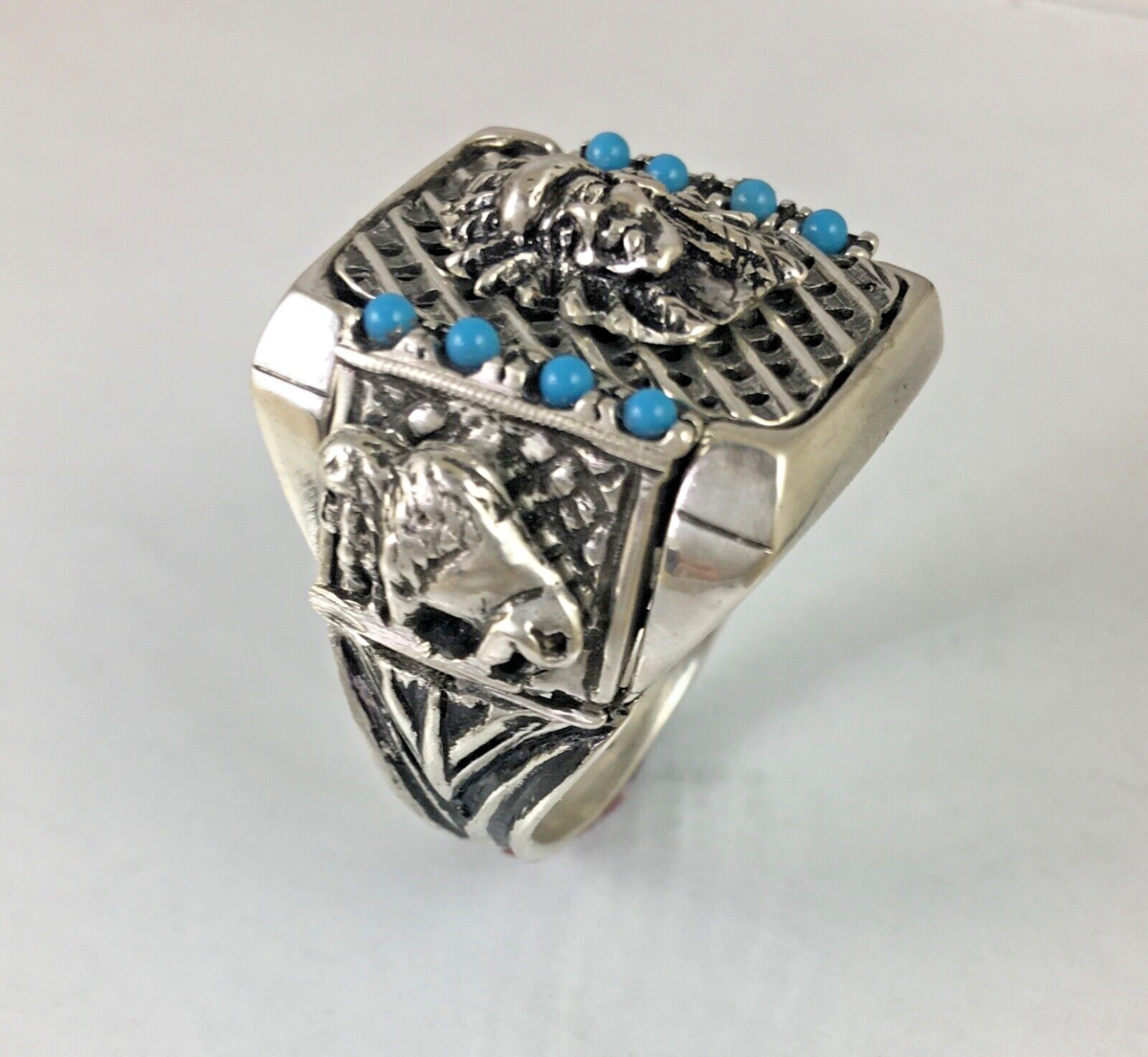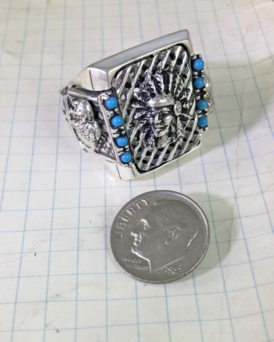 Artisan made American Indian Chief Turqouise Mens ring sterling silver. Lge.