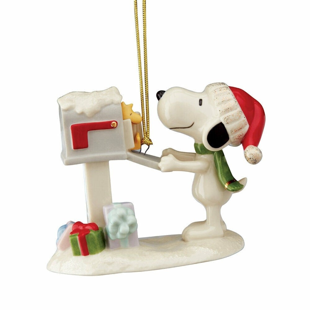 Lenox Peanuts Snoopy's Letter to Santa Ornament Figurine Woodstock Mailbox NEW