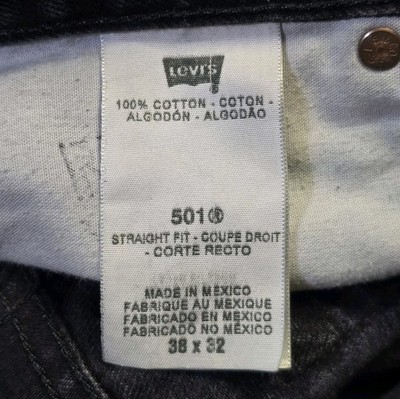 Stamped Irregular. Please see all photos for measurements and condition. This product is a vintage pair of Levi's 501 jeans in mens size 38x32, but they fit more like a 36x31. The jeans are made of black denim with a button fly and feature a mid-rise, straight leg style. They are made of cotton denim and have a 5-pocket design, making them both stylish and functional. The jeans also have Levi's logo accents, adding to their classic appeal. Perfect for year-round wear, these versatile jeans are easy to care for and comfortable to wear.