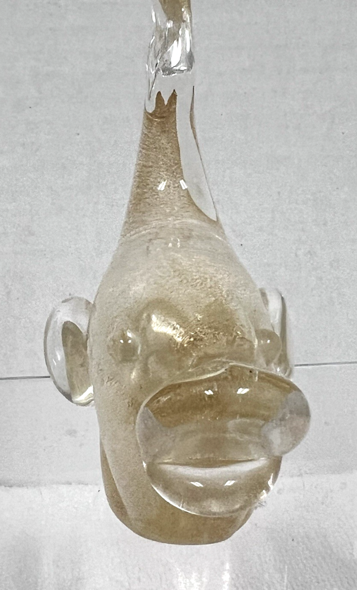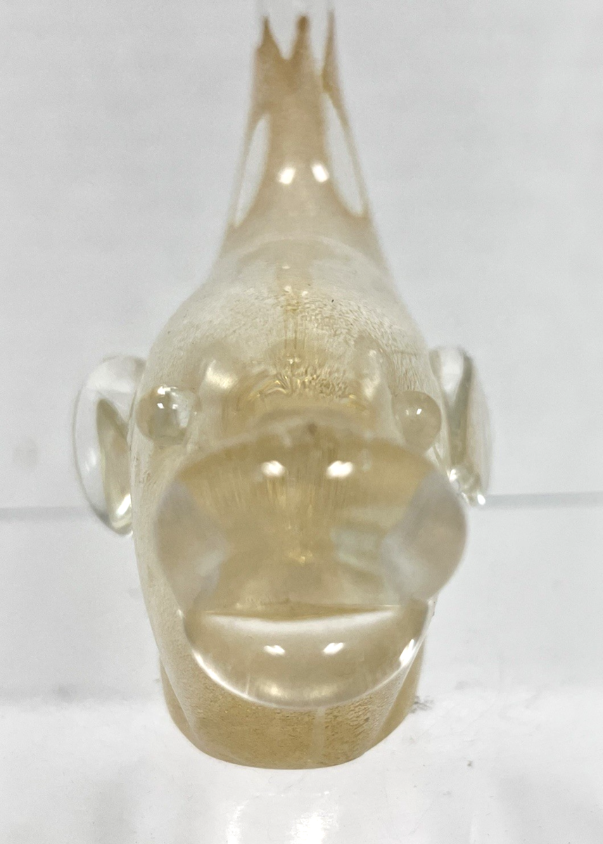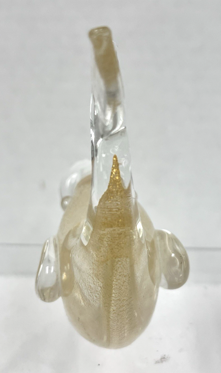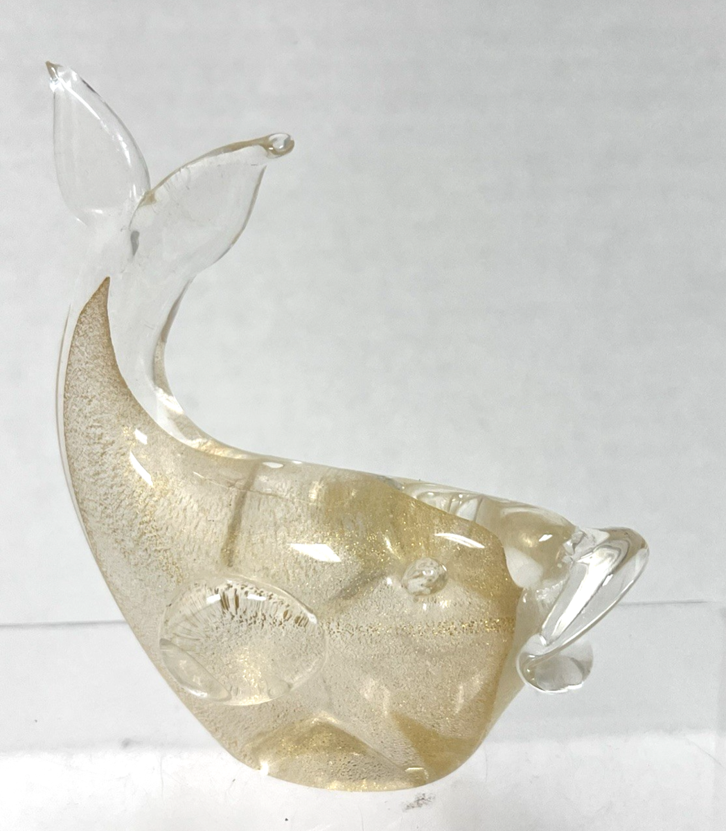 Vintage Murano Italian Clear Art Glass Gold Specks Inside Whale Figurine Approx. 4" long and 4 1/4" to top of tail. Great condition with no damage age wear on polished bottom.